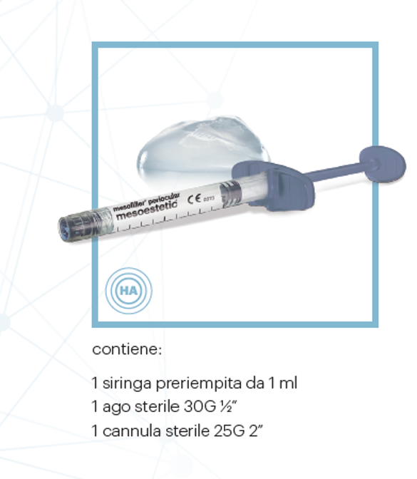 Filler a base di acido ialuronico reticolato specifico per il trattamento degli inestetismi della zona periorbitale.